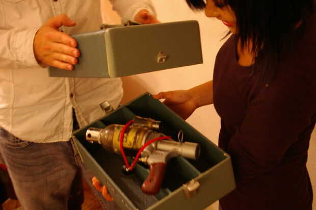 La electrónica de amor armas se mantiene al mínimo, usando sólo un kit automotor-alambre mantenido fácil. Todos aunque se suponía que funcionan con una batería automotriz de 12 voltios, se puede ejecutar de una variedad de tensiones más bajas. Inicialmente iba a utilizar una batería de 9 voltios que encendió el alambre del bien, pero pronto descubrió que incluso una batería de 9 voltios era demasiado grande para ser incorporado en el mango como quería. En su lugar me encontré con baterías de 12 voltios en el dólar almacenan estaban sobre mitad del tamaño de una batería de doble "AA"-perfecto.