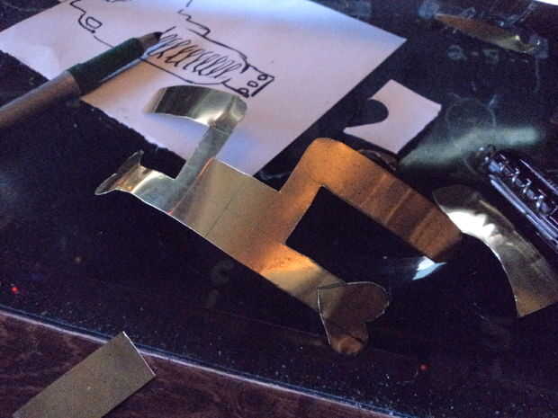 - Una vez reunidos, comencé a buscar maneras ataviar encima, así que comencé a cortar cuñas de latón fino en elementos decorativos.