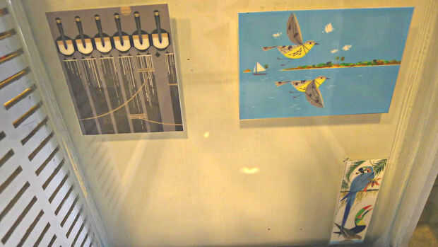 Un buen toque era agregar algunos arte para las paredes. Iba a imprimir algunas fotos pero luego recordé que todavía tenía calendario de pared de Charley Harper del año pasado. Las fotos de muestra pequeña en la parte posterior de la agenda fueron la escala derecha. Recorto, había les había laminado y luego les pegan en lugar con algunos delgada cinta vhb.