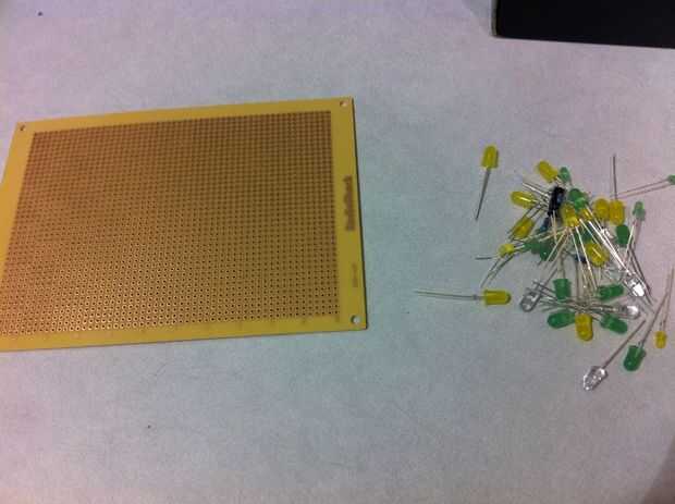He utilizado dos tableros electricos de RadioShack (uno pequeño y uno grande) y tiene unos packs de sus paquetes de surtido de LED.