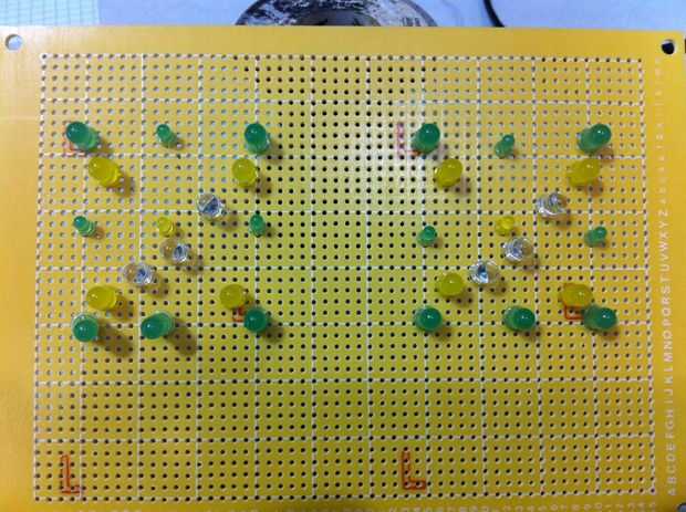 Para el más pequeño fue a continuación y había marcado hacia fuera la forma de un corazón y llenó cada agujero marcado, con la pata negativa del LED. Luego empecé a "Soldadura como un profesional."