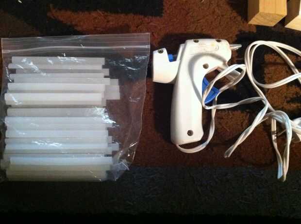 (1) pistola de pegamento caliente con muchos palitos de pegamento caliente