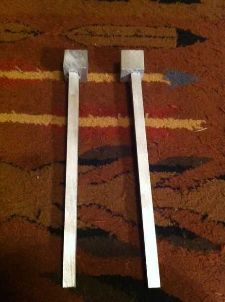 Para las barras tienes que decidir cuánto tiempo desea que los brazos que. Mina eran unos 10.5" largo cada una. Utilicé una sierra de mano y una pinza constante mientras que corté para. Entonces fui y atornillar la varilla para el taco de madera cerca del centro y les rocía ambos metálicos.