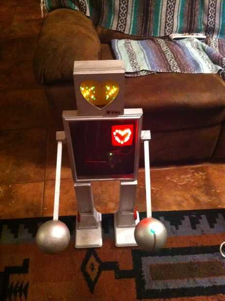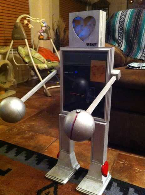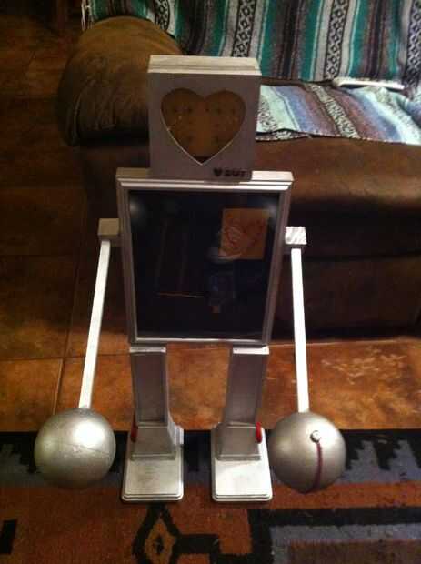 Ahora caliente pegar la cabeza sobre el torso en el centro. Tuve que usar un bunnnccchh de pegamento caliente para esta parte solo para que mi robotty no es un bobble a la cabeza.