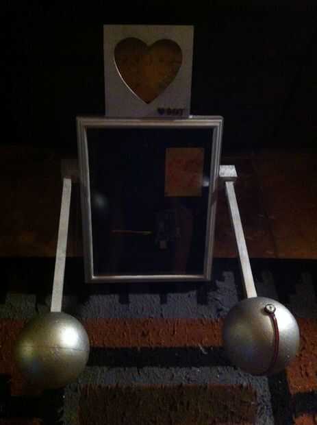 Coloque el corazón LED dentro del torso en la parte superior izquierda. Y tire todo el cable extra que puede colgar en el interior también. Grabado en abajo el alambre. Pero asegúrese de que el cable del sensor de pulso es capaz de funcionar hacia fuera la parte posterior. Poner ojos de LED en el cuadro de corazón de madera. He utilizado pegamento caliente para esta parte tan bien asi fue asegurada. Ejecute el cable de alimentación para su 9V a la parte trasera y asegure el alambre y la batería con cinta adhesiva.