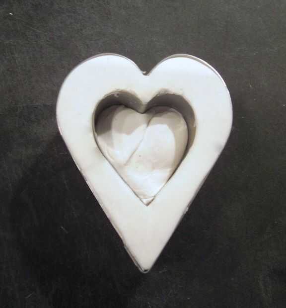 La plantilla más grande se llenan de barro y colocar la plantilla más pequeña en el centro para hacer un hoyo en forma de corazón donde irá el relleno.