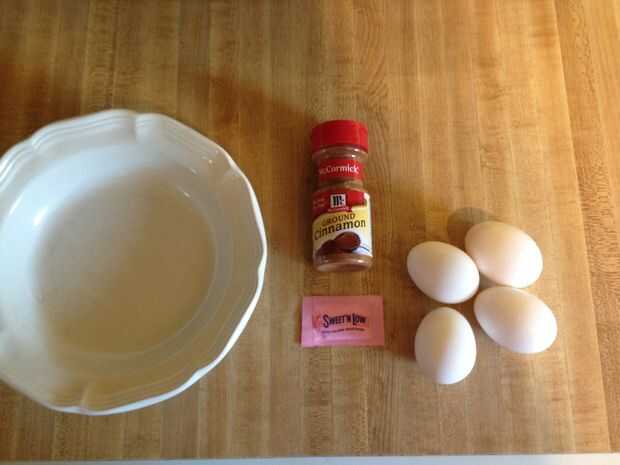 En vez de remojar el pan en el huevo, dejar el pan en la tienda y usar 3 claras y 1 huevo entero. Utilizando blancos más corta la ingesta de calorías.