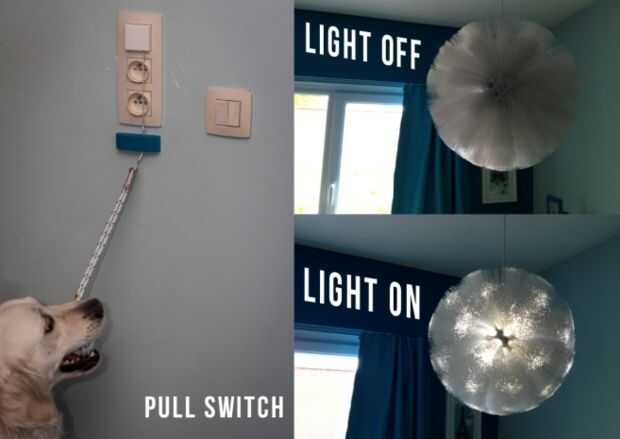 Cuyo interruptor se coloca demasiado alta para un perro de servicio llegar a la gente. Mira el video para ver el problema y la solución.