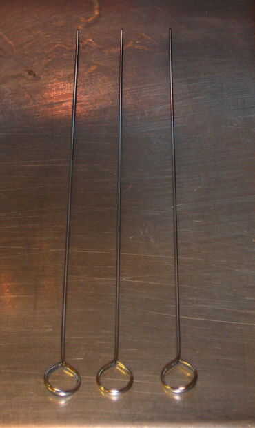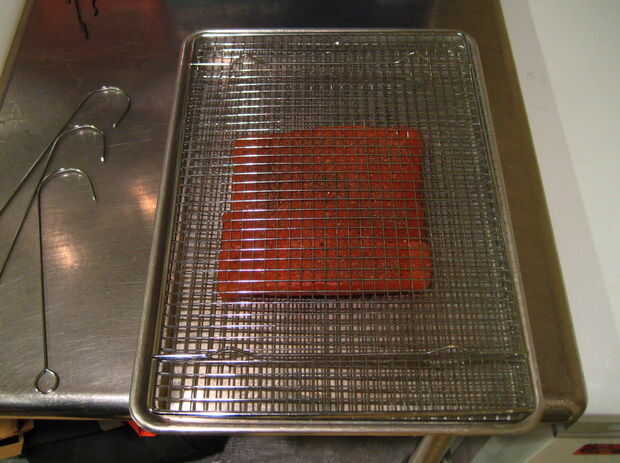 Usted necesitará unos ganchos para colgar los filetes en el ahumador. Usé algunos pinchos de metal baratos y había doblado en ganchos.