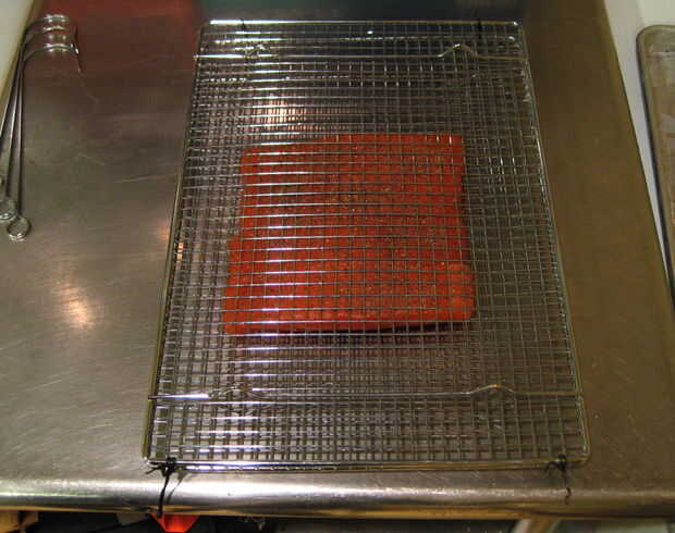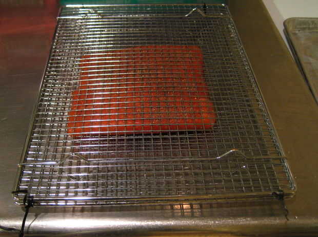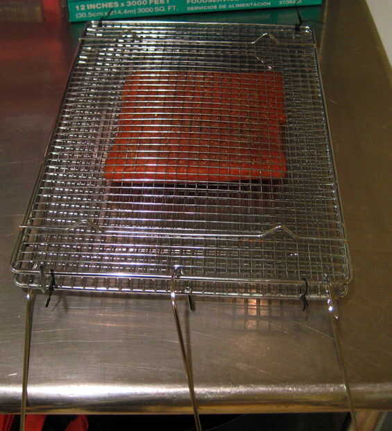 Tomar una segunda rejilla para enfriar y con un par de lazos de torcedura hacer una jaula intercalando los secos filetes dentro.