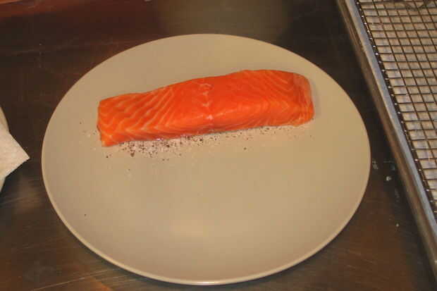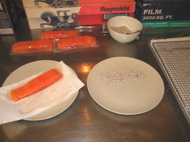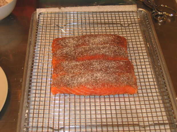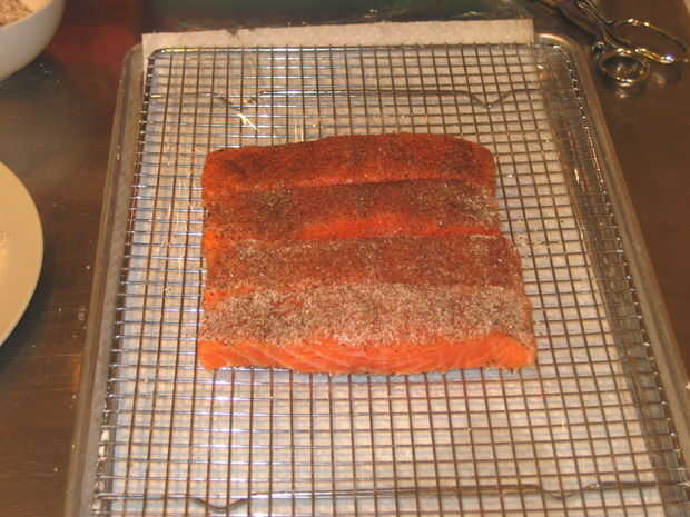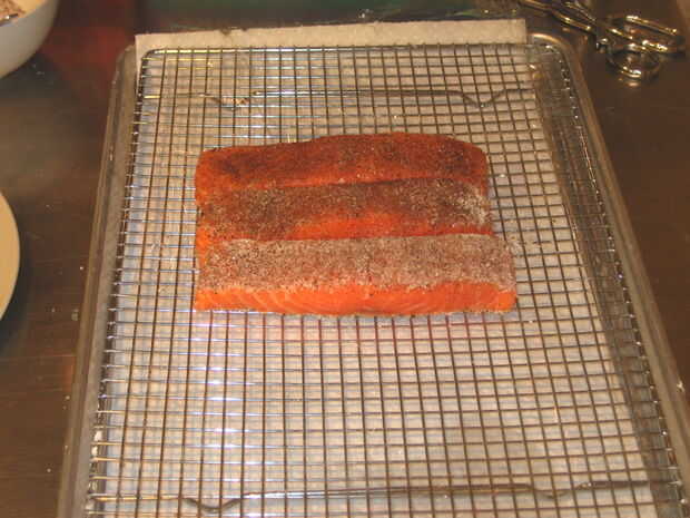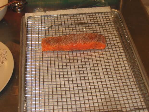 Filete de lugar sobre el estante de enfriamiento. Repita con tantos filetes como tienes. Presione cada uno contra el otro para que los bordes se toquen.