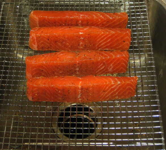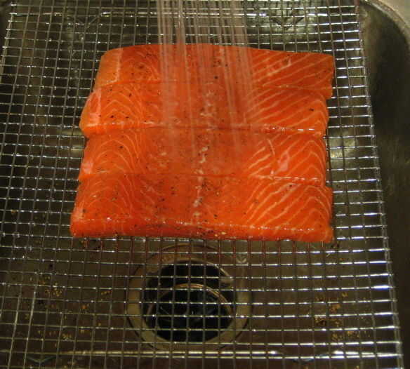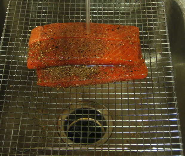 Después del período de curado, saque los filetes y lavar en el fregadero para eliminar cualquier exceso cura.