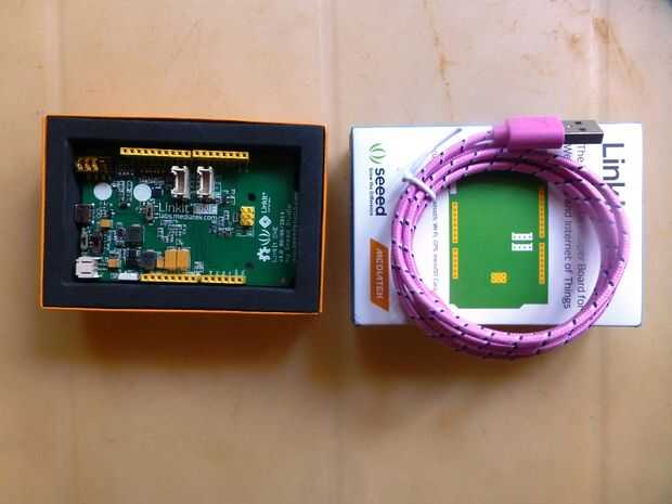 LinKIt un tablero con cable Micro USB y la batería: La Junta un LinKIt puede ser alimentada por una batería, así como a través de USB al conectar a una computadora / ordenador portátil.