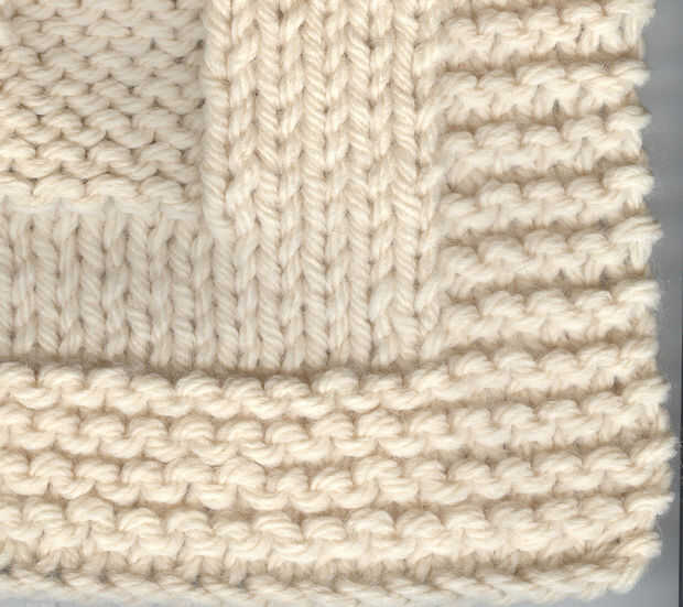 Para esta clase, yo quería un proyecto simple que era más interesante que una bufanda puntada de la liga. Decidí enfocar los conocimientos muy básicos de fundición en el punto y puntadas de la puntilla y atar apagado. Además, quería enseñar a mis alumnos cómo reconocer un punto frente a una puntada de la puntilla en su trabajo y ser capaces de cambiar entre hacer punto y ribeteado en medio de una fila. Por último, quería darle a mis alumnos una muestra de liga, punto y puntadas de punto jersey revés. El resultado fue este proyecto de almohada!