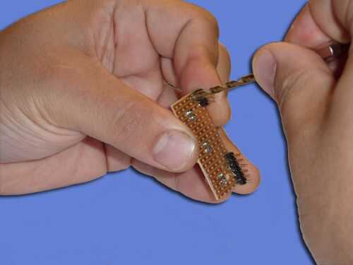 Ya no estamos utilizando a través de componentes de agujero en la parte superior de la veroboard aparte de los LEDs, por pulcritud estamos usando Kynar. Con esto nos acaba que el poder y motivos los LEDs. Puede ejecutar estos cualquier forma que desea, como el uso de hilo de estaño en la parte superior de la Junta.