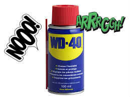 Si usted utiliza WD-40 en las partes móviles de tu bicicleta (hay mejores formas de exorcizar partes oxidadas y pegadas, pero, sé que es muy tentador), asegúrese de limpiar cuidadosamente la parte luego para quitar cualquier sobrante de WD-40 y luego lubricar con grasa o aceite lubricante adecuado.