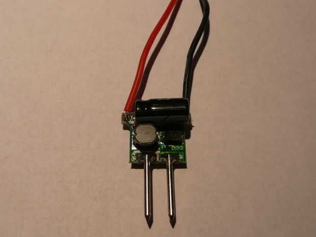 drivers de 650ma de DealExtreme. 650MA es mucho para lo que necesita y también reducir al mínimo el calor generado por el LED. También incorporan un convertidor AC/DC. Estos controladores también tienen dos pernos soldados a las entradas que pretenden aparearse con los zócalos de lámpara MR16 de las luces. $6 para un paquete de cinco mantienen el coste así.