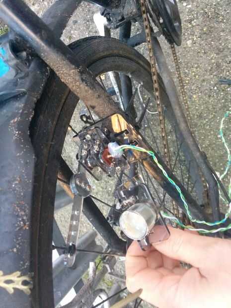 Conecte la unidad de LED en la parte trasera de la bicicleta visible algunos donde.