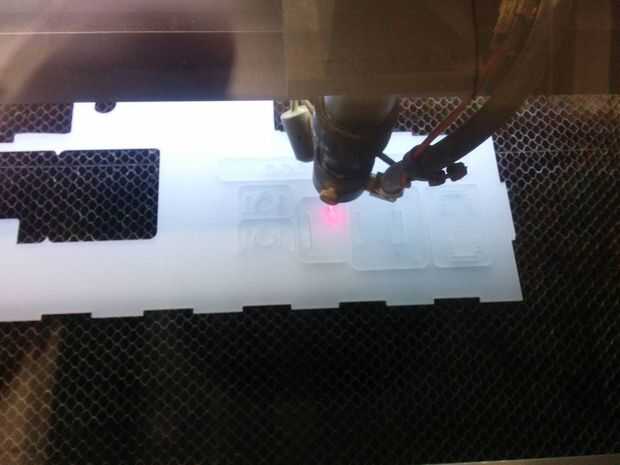 Usando un cortador láser, recorte el archivo deign en acrílico de 3mm.