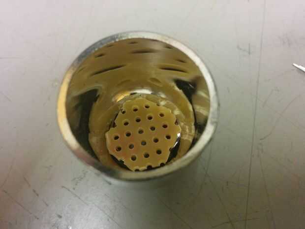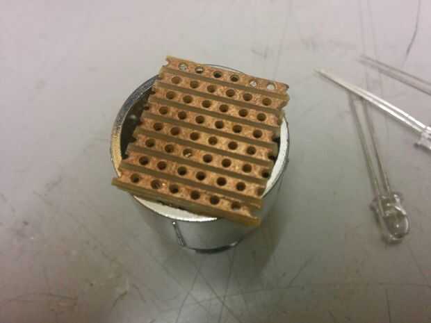 La soldadura en un pequeño trozo de tablero de vero de la faja. Corte la tabla de vero para encajar en el reflector.