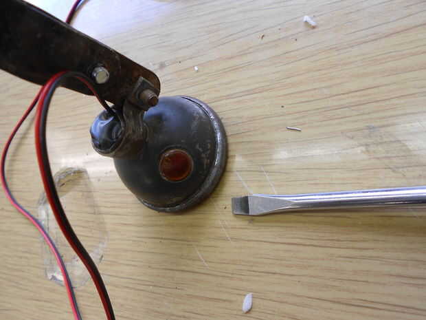 Primero hice a la luz de la cola. Para construir en el LED tuvo que abrir primero. Lo hice por flexión abierto el anillo de metal que sostenía el vaso con un pequeño destornillador. Tenga cuidado de evitar mucho daño aquí.