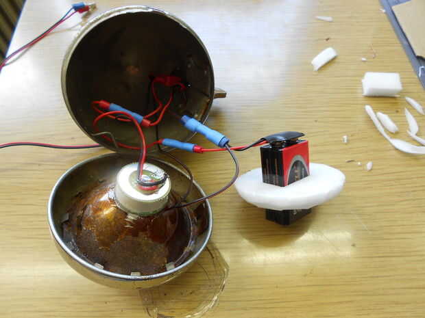Para evitar que la batería de 9V vibraciones alrededor de la carcasa del foco, cabe un trozo de espuma para mantener en su lugar.