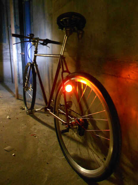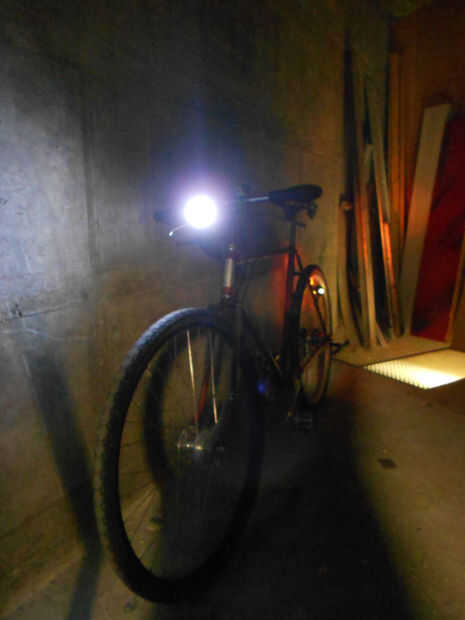 Por último pongo las luces en la bicicleta. El cableado casi desaparece y la luz es muy brillante.