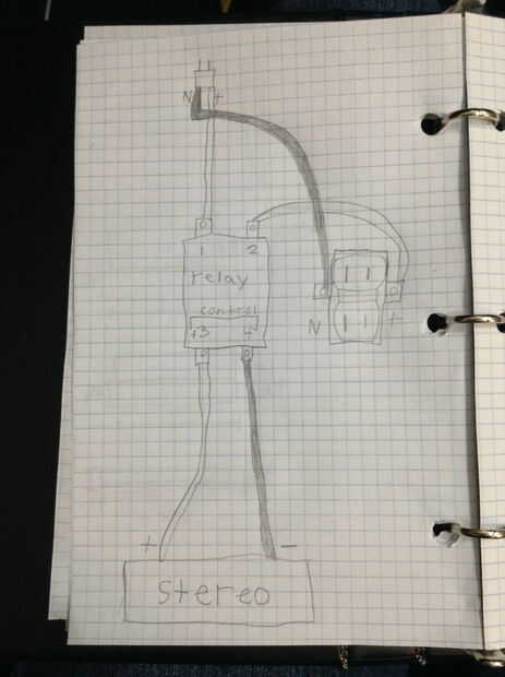 Las obras de relé es utiliza bajo voltaje (3v-32v en es el caso) y enciende y apaga un voltaje más alto (120v en es caso). Debe conectarse a + de la pared a la clavija 1 en el relé, neutral de la pared a neutro en la salida en la casilla + de la corriente en la caja al pin 2, + estéreo de forma a la clavija 3 y - de estéreo con conector de 4. Mira el esquema y la imagen del relé para visualizarla. Luego pegue en el relé a la caja.