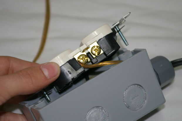 Los tornillos en el lado izquierdo o el lado grande de la salida son neutrales, y los tornillos de la izquierda o el lado más pequeño son positivos. Enroscar los cables.