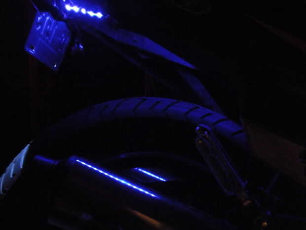 ¿En cuanto a seguridad? Soy consciente de los riesgos y espero que también. Añadir luces a tu viaje pueden ser una distracción a cualquier persona alrededor de él (usted incluido) tan sólo hacerlo si usted acepta la responsabilidad de las consecuencias potenciales, que supongo ya toma si está manejando una bestia con ruedas estas dos.