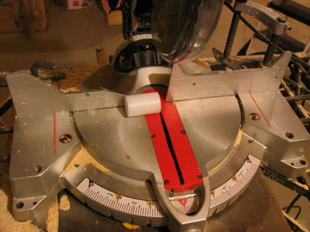 En primer lugar, desea medir su cuerpo luz, o el tubo en el que se va la luz. Hice mis 2 1/2" de largo, que creo que es perfecto, pero eres Bienvenido a ajustar eso si quieres. Utilice un bolígrafo y la medida de la cinta o lo que tienes, para marcar la longitud del tubo. Corte de la tronzadora, pero recuerde, corte en el lado opuesto de la pieza que vas a utilizar, para compensar el espesor de la hoja.