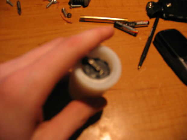 -Utilizar epoxi o silicona sealtant, preferiblemente blanco o claro para la estética, para adherir el soporte de la batería en la parte inferior del cuerpo.