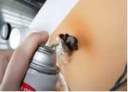 7.a Rociar el pegamento del aerosol en la parte superior de la flor de piña.