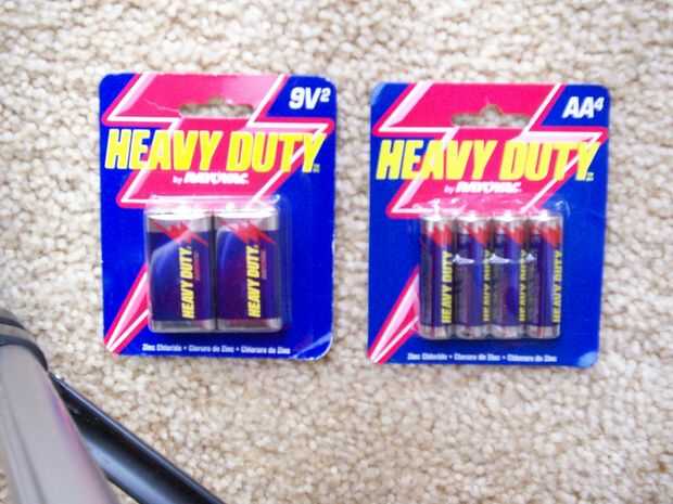 Algunas baterías de cloruro de carbono de ZINC o ZINC!!! 111!!!!!! NO debemos utilizar pilas alcalinas! Pilas alcalinas son las que tienen un montón de dióxido del manganeso del desagradable y otras cosas malas. Usted encontrará que baterías de carbono Zinc a menudo se comercializan como "Heavy Duty". He usado pilas C y de D, de AA y 9 voltios están muy bien. Tenga en cuenta que el tamaño de la varilla de carbono contenido en cada una de estas baterías es diferente.