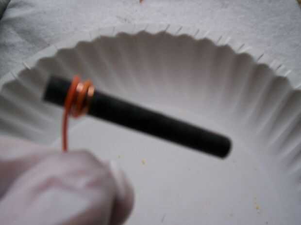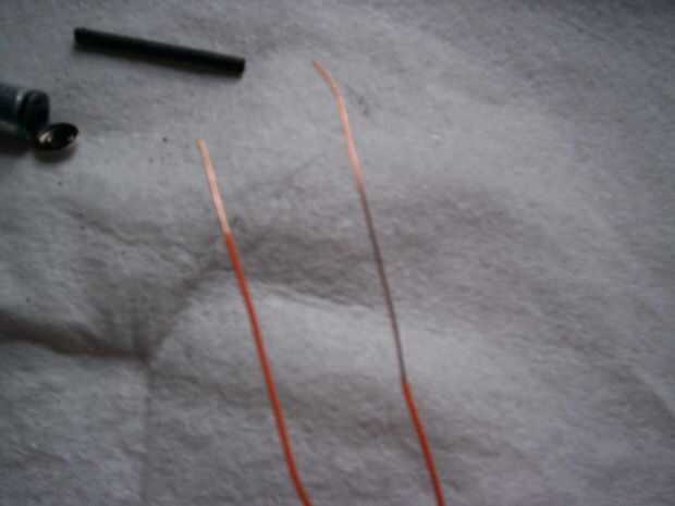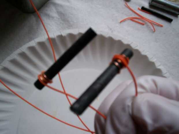 Tome el extremo largo despojado de uno de los cables y enróllelo alrededor de una de las barras. (También podría cinta adhesiva / pegue / cualquiera que sea) Hacer lo mismo con el otro cable.