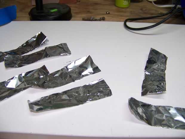 La clase simple era sólo una tira de papel de aluminio, con un pequeño trozo de imán de neodimio doblado en cada extremo. Ver las fotos de abajo para más detalles.