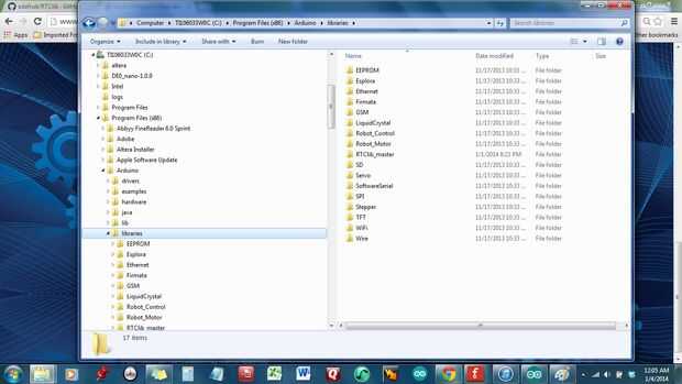 -Pegar el archivo con el nuevo nombre (llamar mía RTClib_master) en la subcarpeta de la biblioteca de la carpeta de Arduino como se muestra en la imagen. Esta es la carpeta de Arduino que se creó al instalar el IDE de Arduino en su computadora.