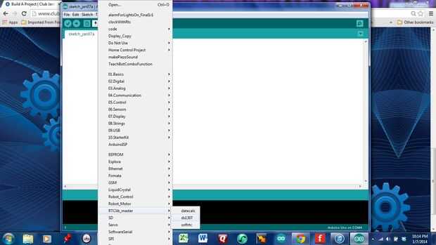 -Ir al icono 'abrir' y vaya a la RTClib_master > ds1307. Se abrirá un programa en el IDE de Arduino.