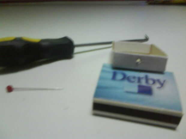 hacer un agujero en la caja del fósforo con una herramienta de punción