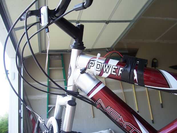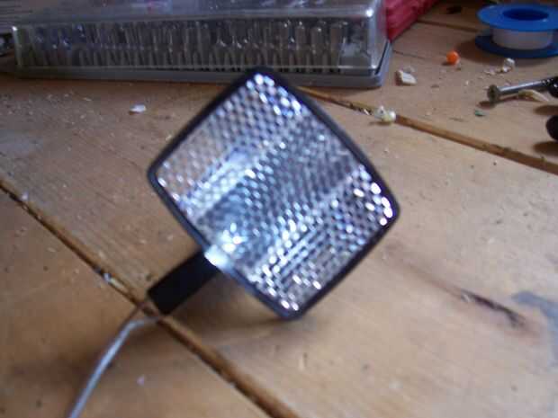 madera usando una batería de 9 voltios, algunos LED y papel de aluminio, facilitan su bicicleta ser visto desde el lado y la espalda.Desde la izquierda y derecha, un amarillo claro y de la parte trasera, una luz roja.Después de hacer seis piezas de m