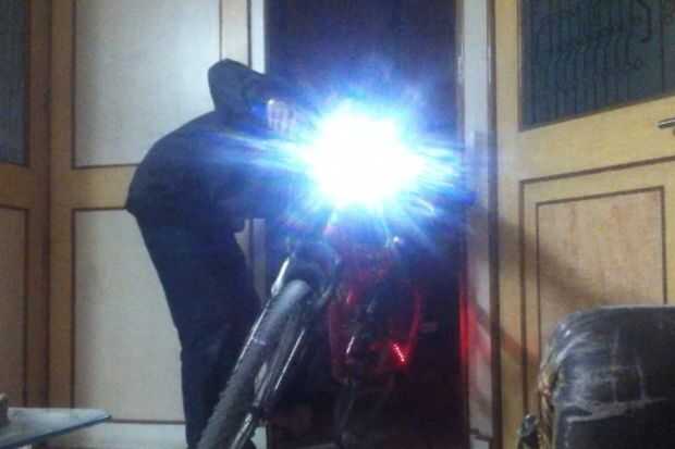 madera usando una batería de 9 voltios, algunos LED y papel de aluminio, facilitan su bicicleta ser visto desde el lado y la espalda.Desde la izquierda y derecha, un amarillo claro y de la parte trasera, una luz roja.Después de hacer seis piezas de m