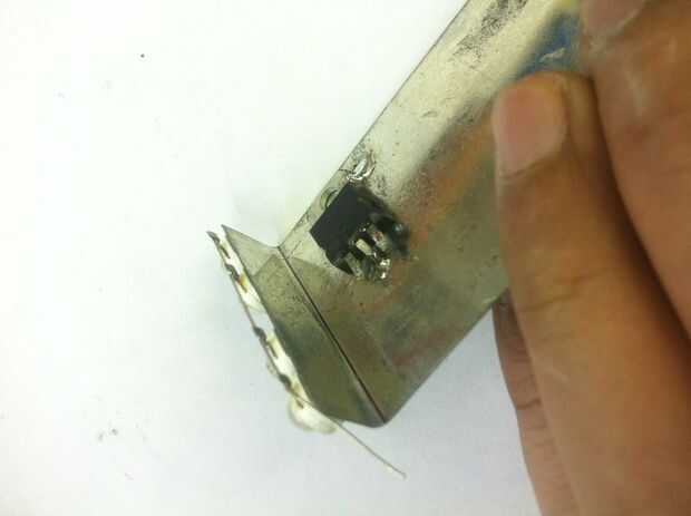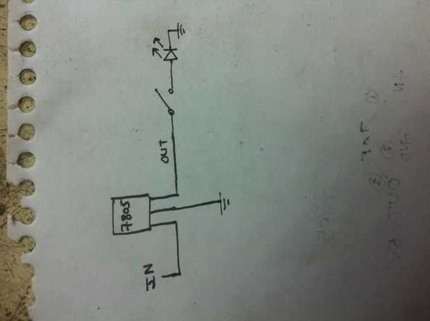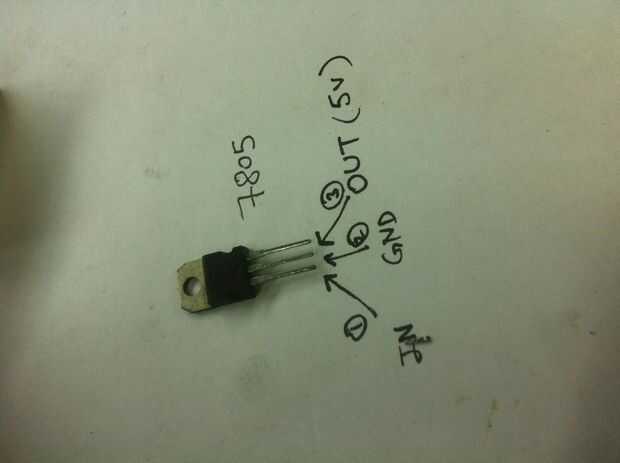 -ahora el regulador 7805 a la hoja de la soldadura como se muestra, conecte el interruptor del tablero de la llave a la clavija 3 como se muestra