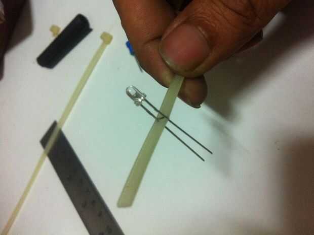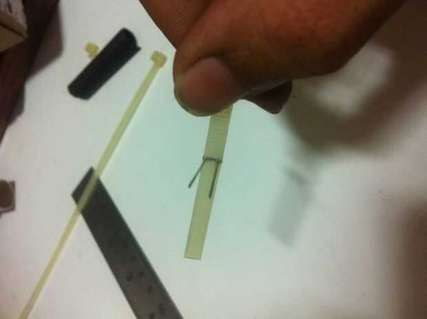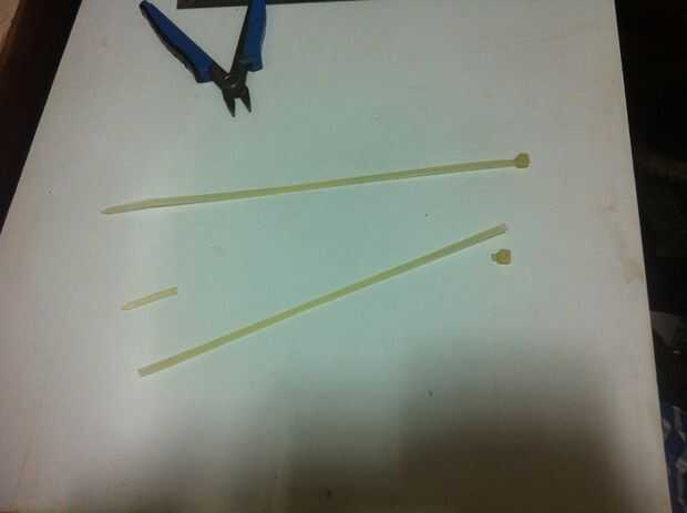 -tomar los lazos zip y cortar el inicio y final con la ayuda del cortador de alambre