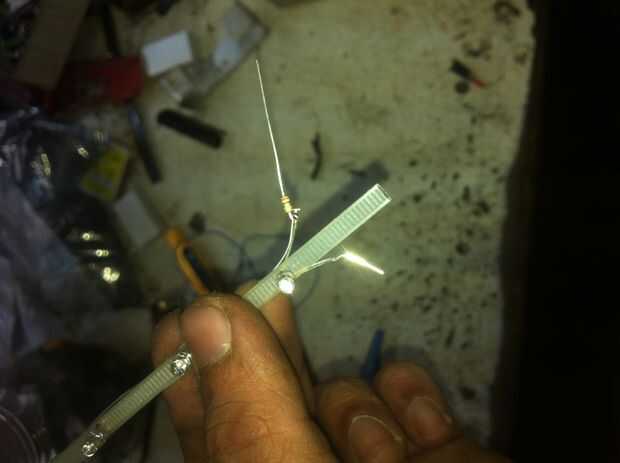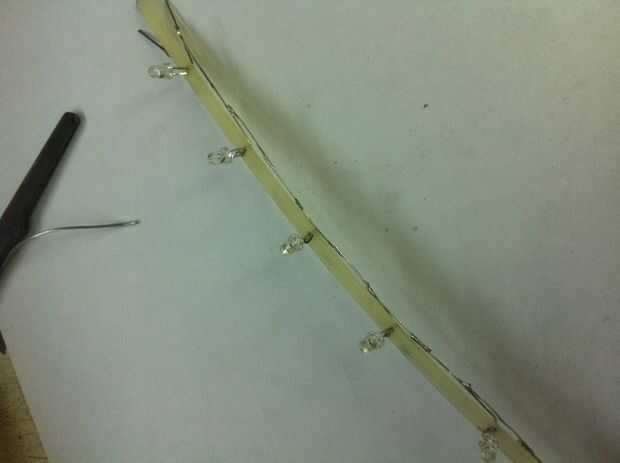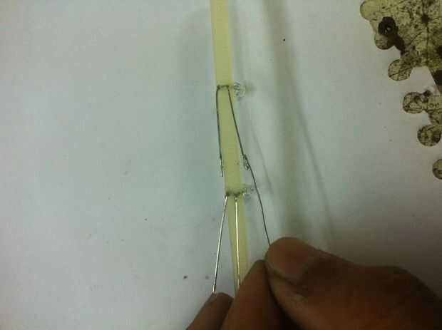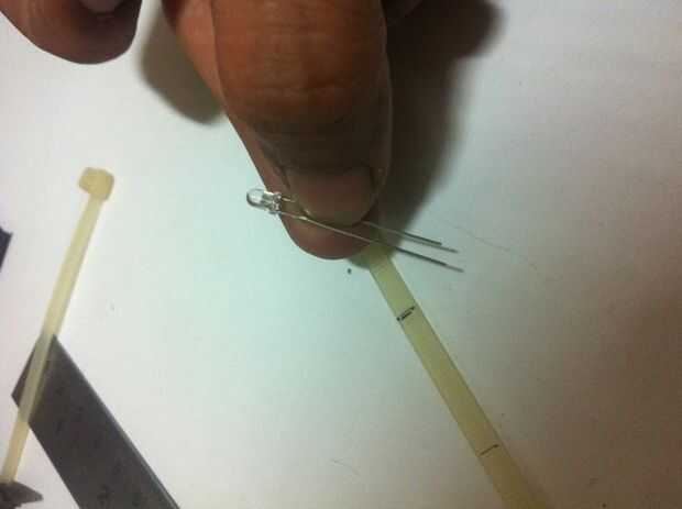 -ahora la parte difícil, hacer agujeros para los 3 mm led pins con la ayuda de un alfiler de Junta