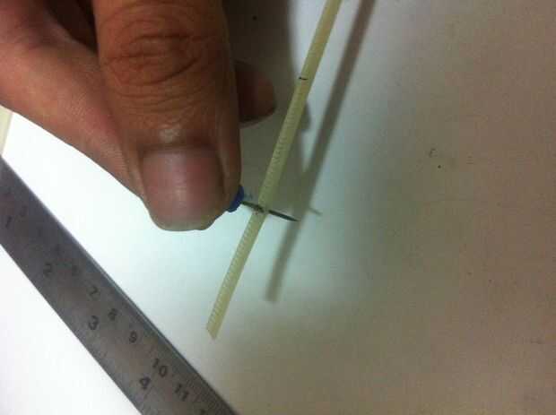 -Marcos 6 marcas cada 2,5 cm una de otra como se muestra