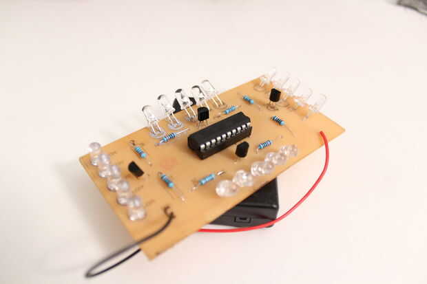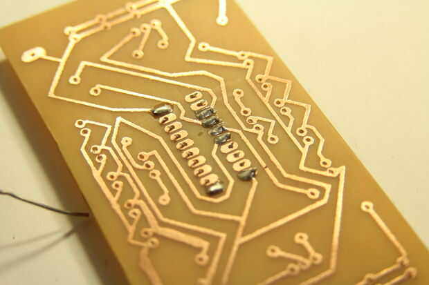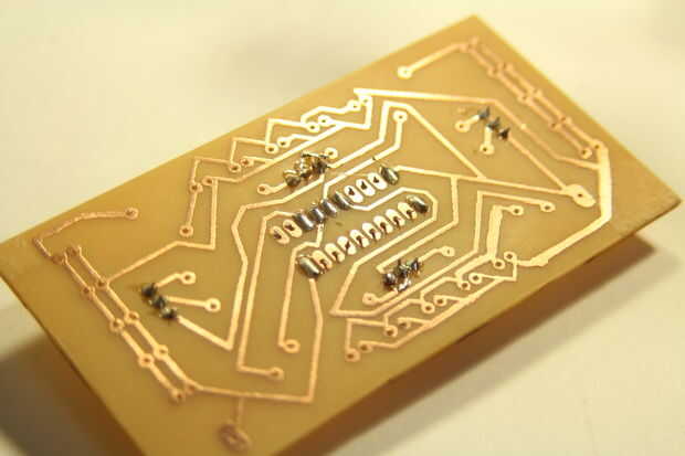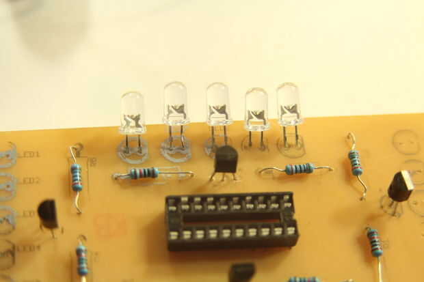 - La soldadura en las 4 resistencias de 150Ω en el tablero. Estos serán limitadores de corriente para los LEDs para no quemarlos!