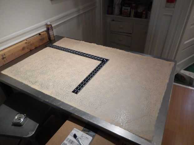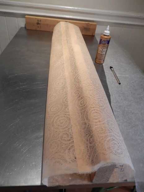 Cortar el papel hasta 39 "x 20". Marque una línea de 1" de uno de los bordes laterales. Aplique una capa muy delgada de pegamento artesanal y conecte el otro extremo del papel en la línea para formar un cilindro. Deje que el pegamento secando.