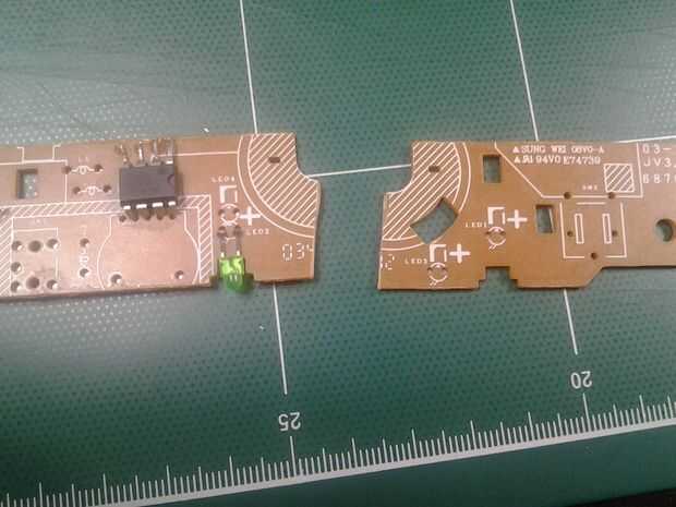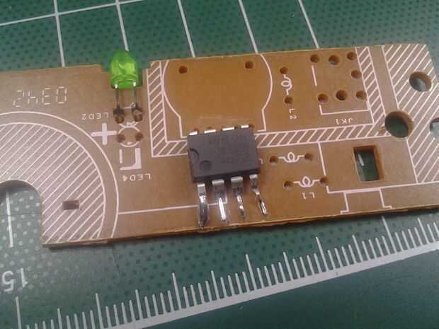 El tiempo 555 sólo fue capaz de hacer uso de 4 agujeros para sus alfileres. Había aplastado por el otro lado y había estañado para soldar.