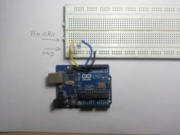 Conecte 2) + ve de un Led al Pin 12 de Arduino.