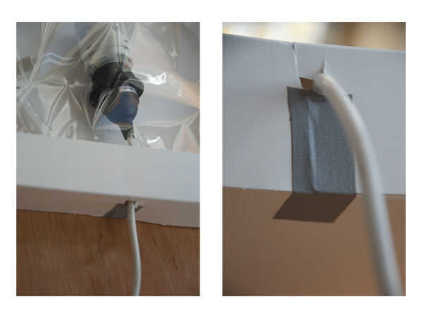 2. Perfore o corte (Asegúrese de tener una supervisión adecuada durante el uso de tijeras) orificio para cable de salida de caja.